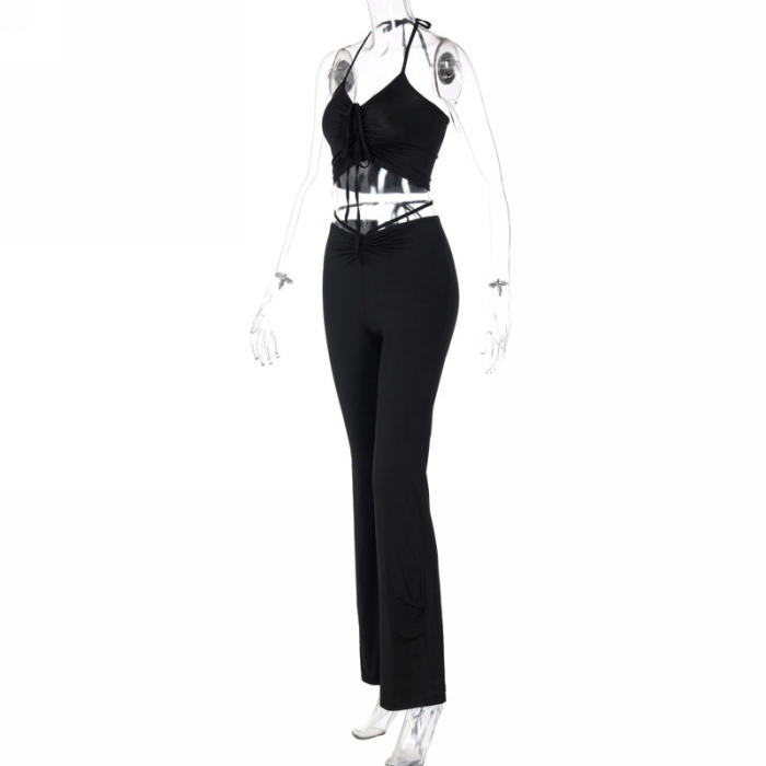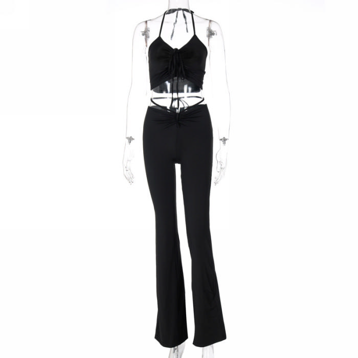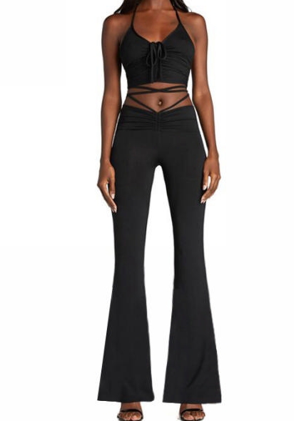 (Real Image)2022 Styles Women Sexy Spring&Winter TikTok&Instagram Styles Tie Ruffle Two Piece SuitSKU: #CF81005-2