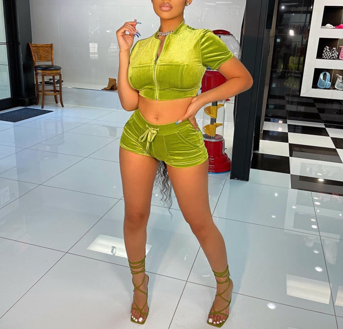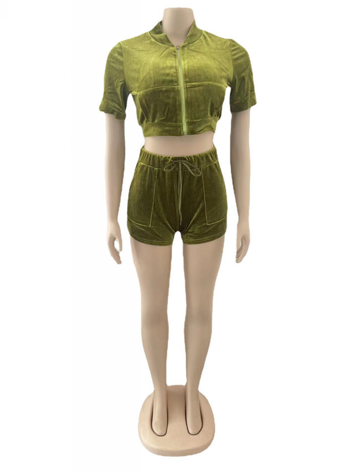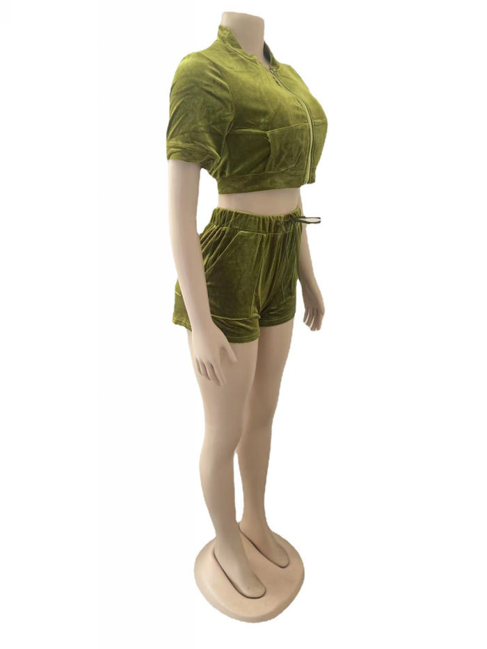 (Real Image)2022 Styles Women Sexy Spring&Winter TikTok&Instagram Styles Velvet Short Two Piece SuitSKU: #TP018-6