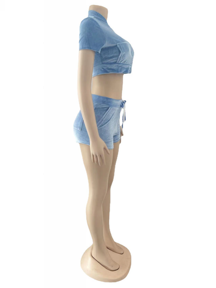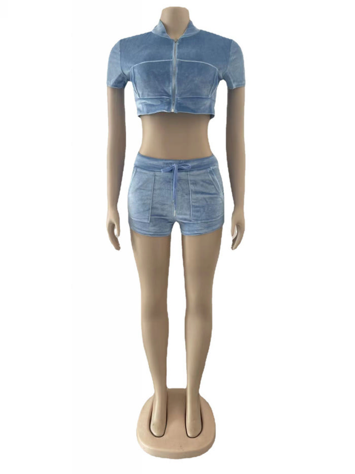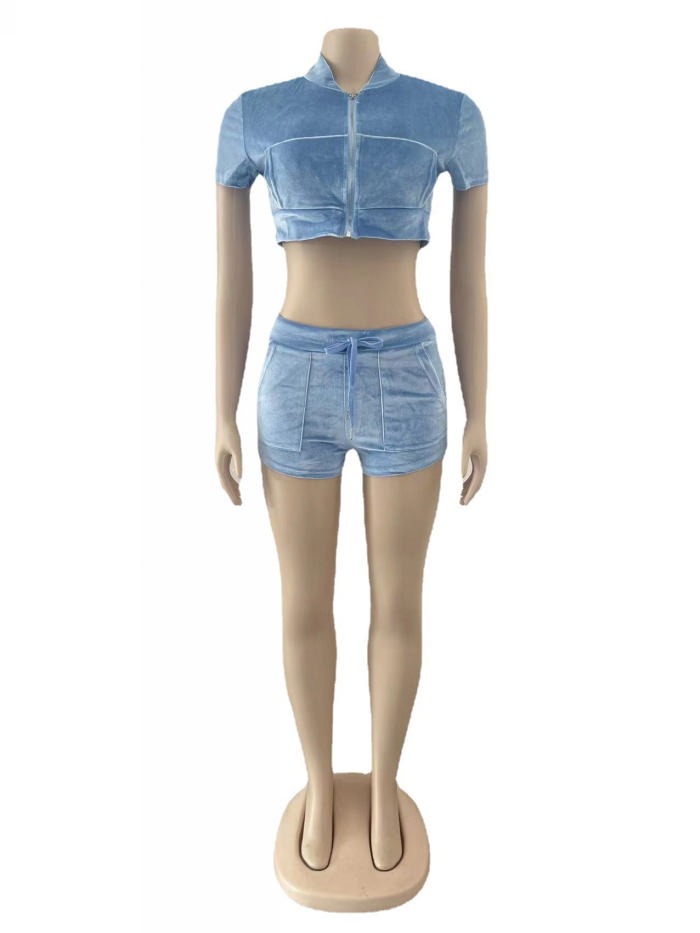 (Real Image)2022 Styles Women Sexy Spring&Winter TikTok&Instagram Styles Velvet Short Two Piece SuitSKU: #TP018-5