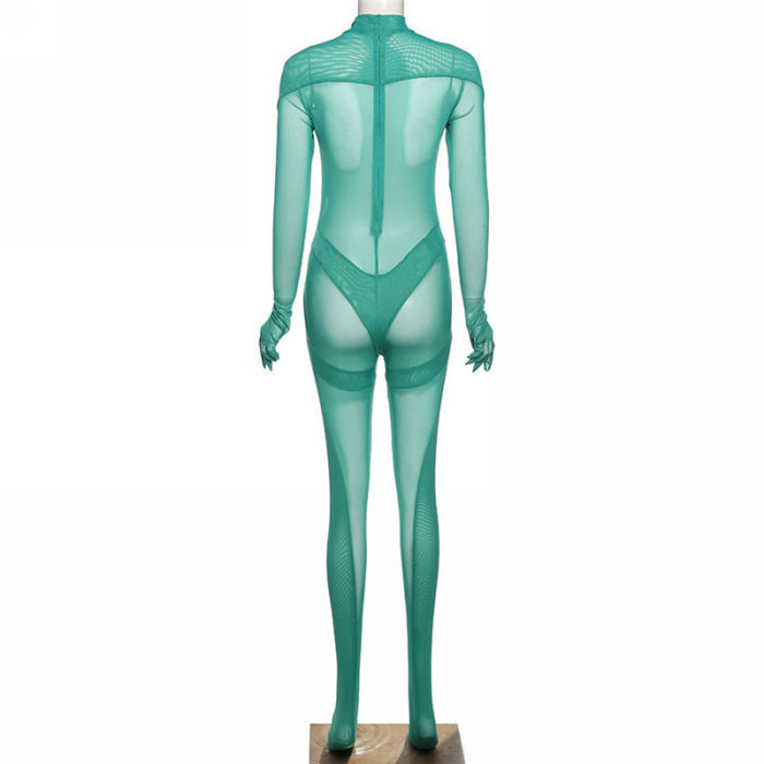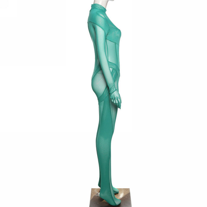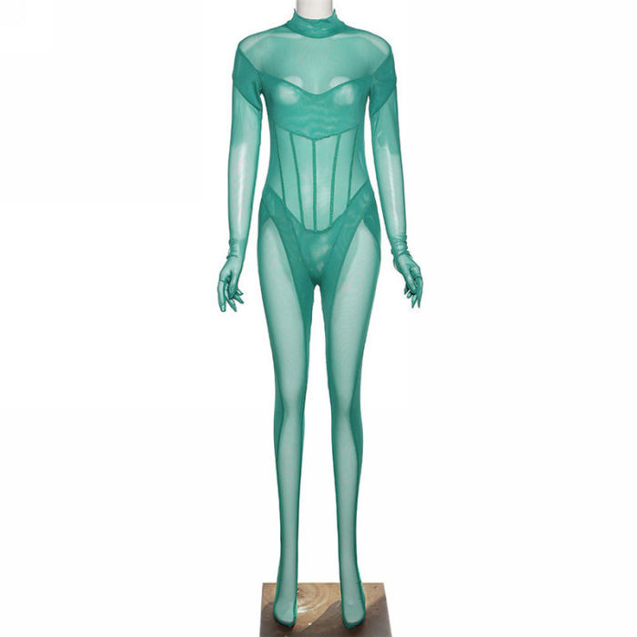 (Real Image)2022 Styles Women Sexy Summer INS Styles Mesh Long Sleeve JumpsuitSKU: #CF49561-1