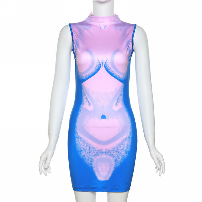 (Real Image)2022 Styles Women Sexy TikTok&Instagram Styles Print Sleeveless Summer Mini DressSKU: #OM350-1