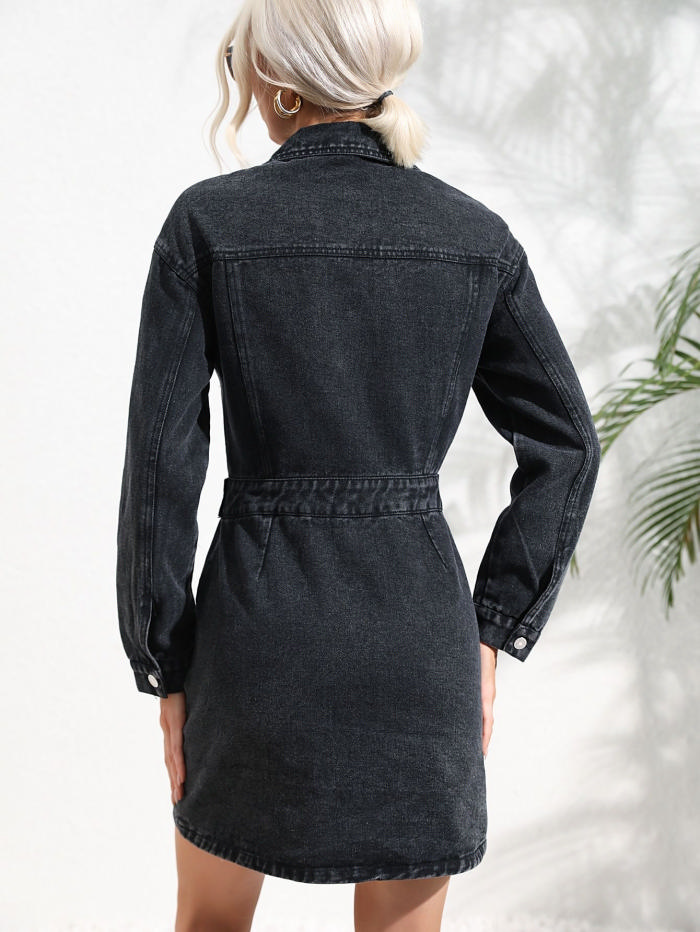 (Real Image)2023 Styles Women Christmas Sexy&Fashion Autumn/Winter TikTok&Instagram Styles Drak Gray Jeans Mini DressSKU: #CF65136-1