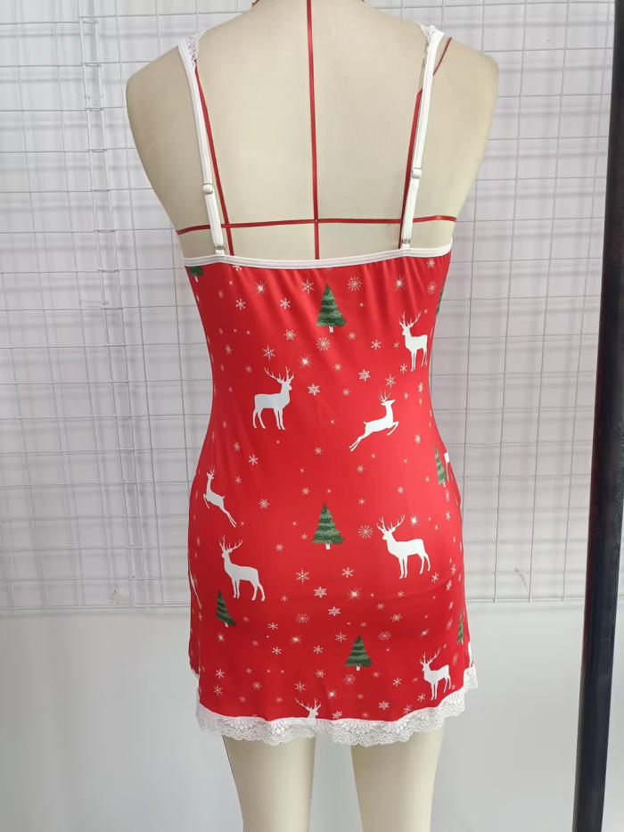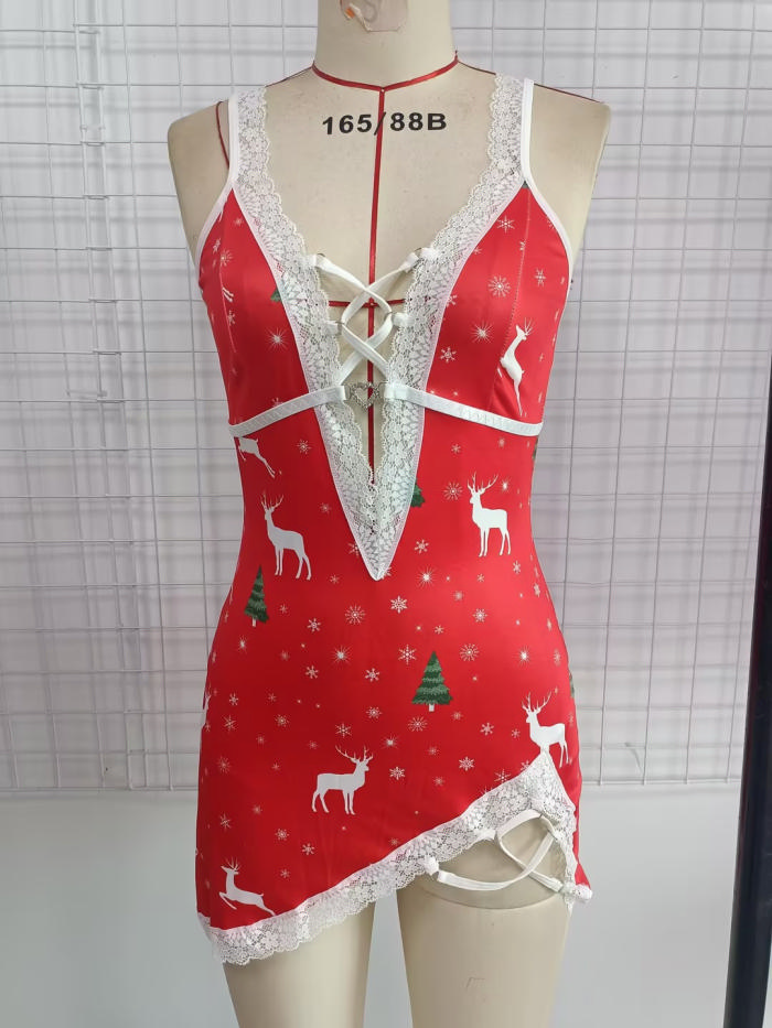 (Real Image)2023 Styles Women Christmas Sexy&Fashion Autumn/Winter TikTok&Instagram Styles Lace Up SleepwearSKU: #XF38091-1