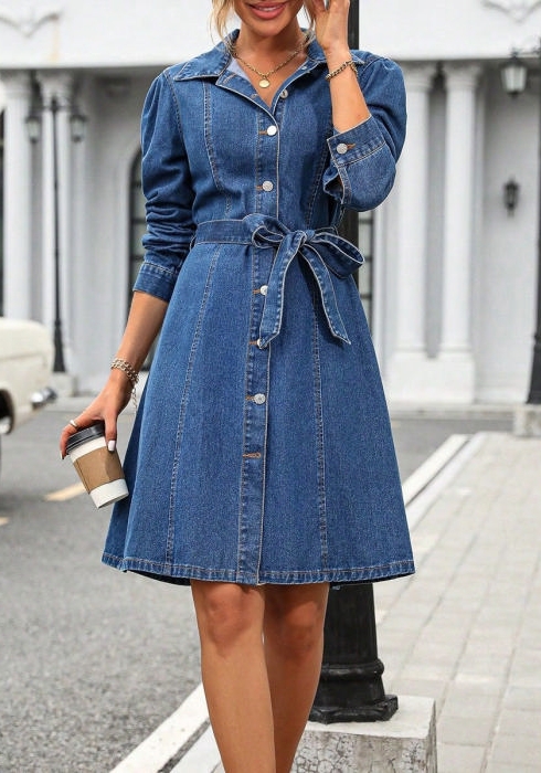 (Real Image)2023 Styles Women Christmas Sexy&Fashion Autumn/Winter TikTok&Instagram Styles Long Sleeve Jeans Mini Dress With Waist TieSKU: #CF65138-1