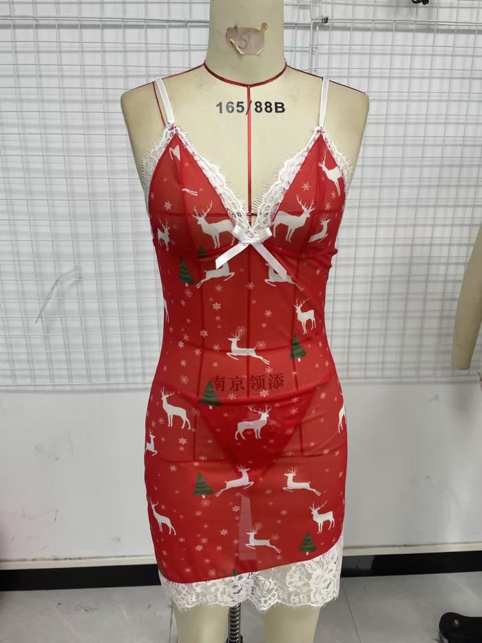 (Real Image)2023 Styles Women Christmas Sexy&Fashion Autumn/Winter TikTok&Instagram Styles SleepwearSKU: #XF38082-1