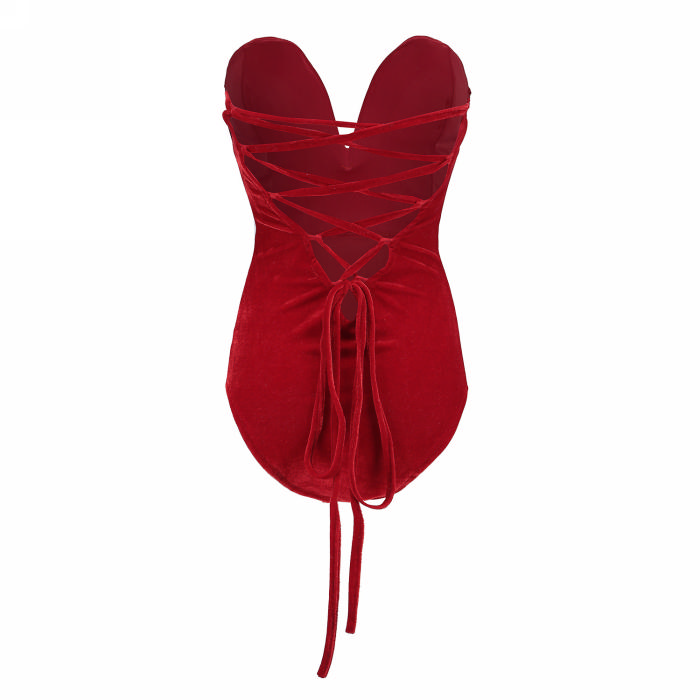 (Real Image)2023 Styles Women Christmas Sexy&Fashion Autumn/Winter TikTok&Instagram Styles Velvet Tube BodysuitSKU: #CF65125-6
