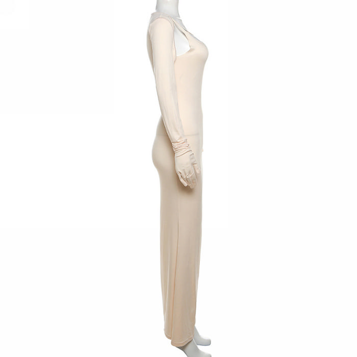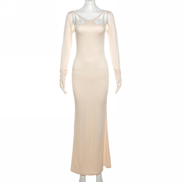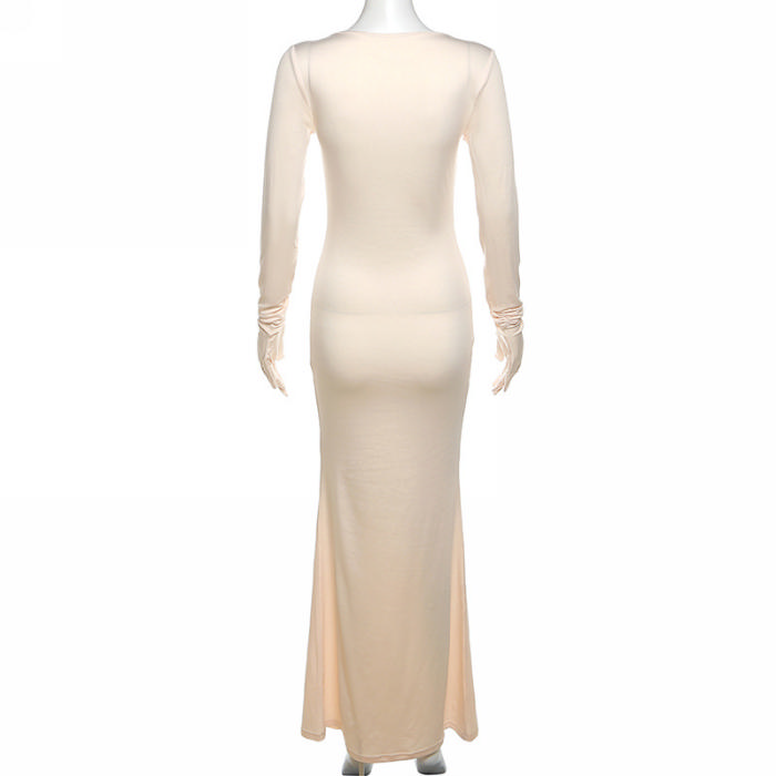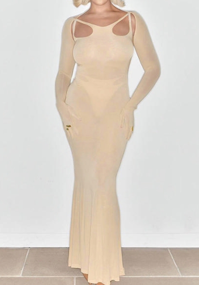 (Real Image)2023 Styles Women Sexy&Fashion Autumn/Winter TikTok&Instagram Styles Apricot Long Sleeve Maxi DressSKU: #CF83266-1