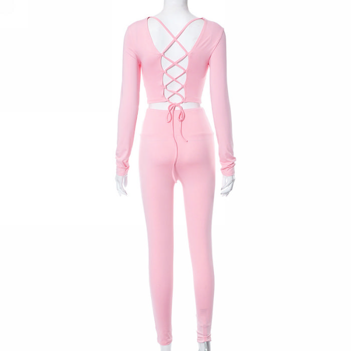 (Real Image)2023 Styles Women Sexy&Fashion Autumn/Winter TikTok&Instagram Styles Back Lace Up Two Piece SuitSKU: #CF47776-1