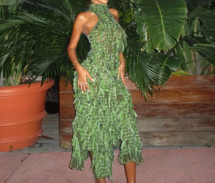 (Real Image)2023 Styles Women Sexy&Fashion Autumn/Winter TikTok&Instagram Styles Backless Green Sweater Midi DressSKU: #CF77741-1