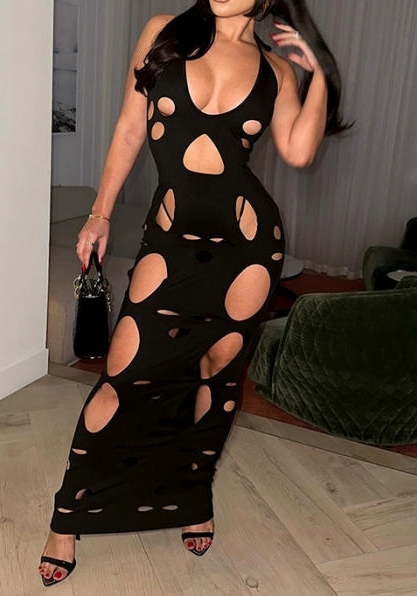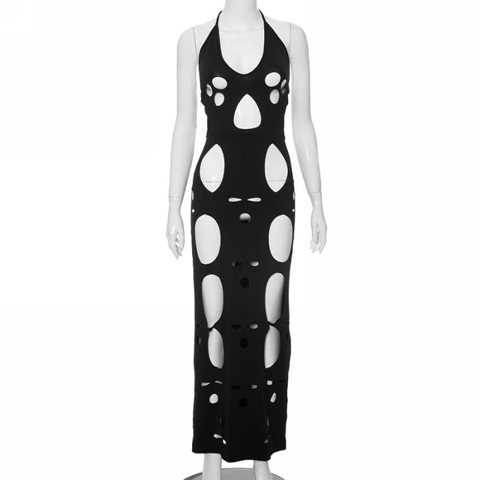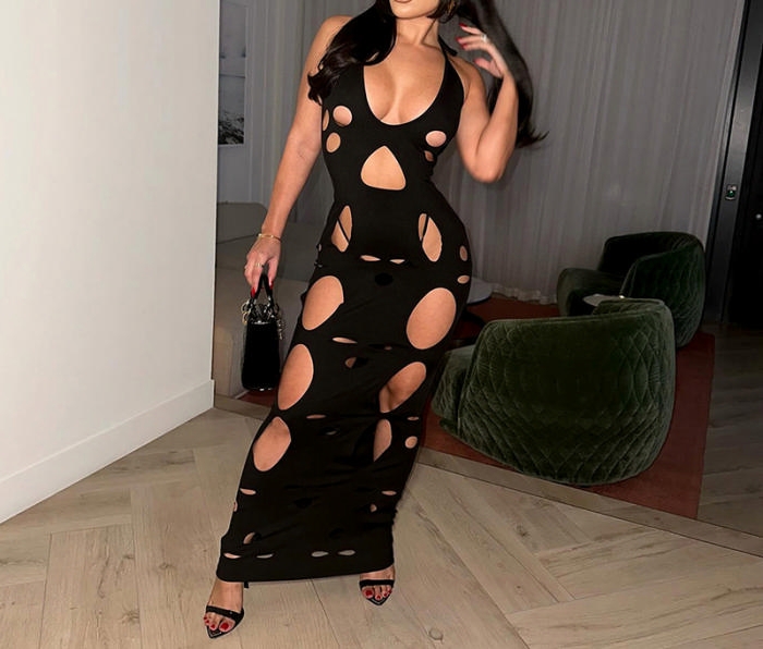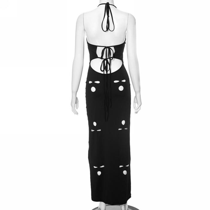 (Real Image)2023 Styles Women Sexy&Fashion Autumn/Winter TikTok&Instagram Styles Black Cut Out Halter Maxi DressSKU: #CF47839-1
