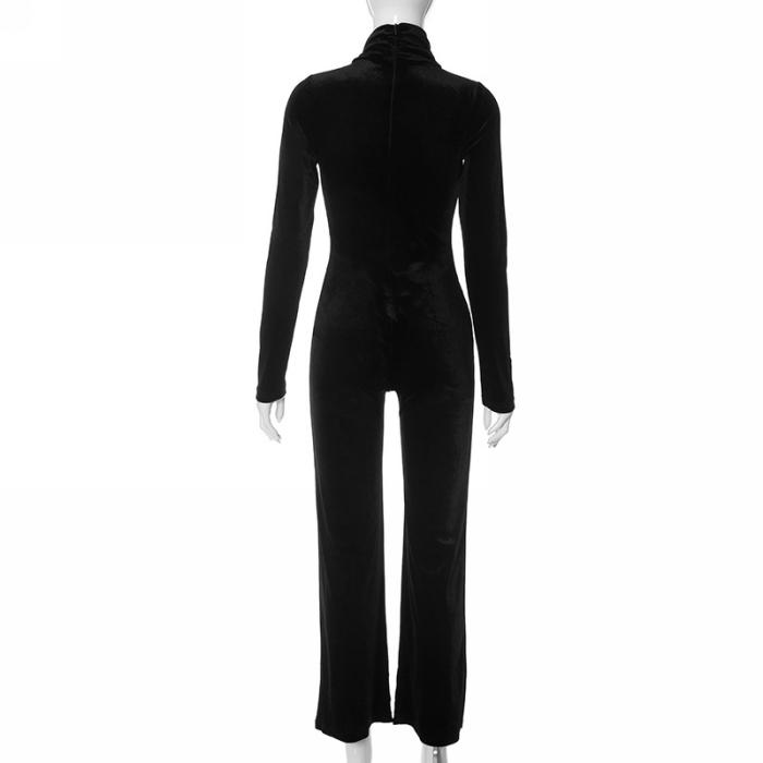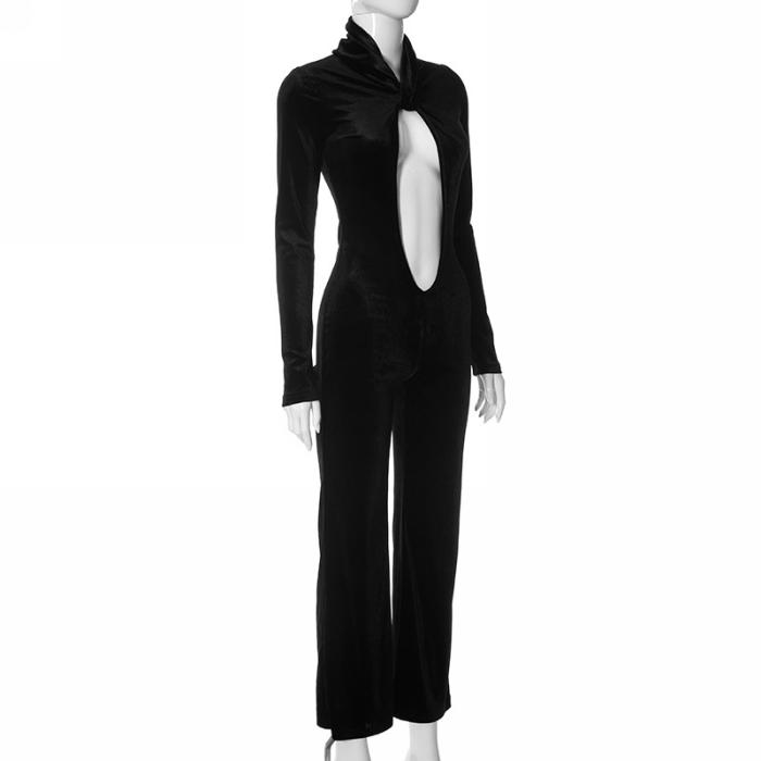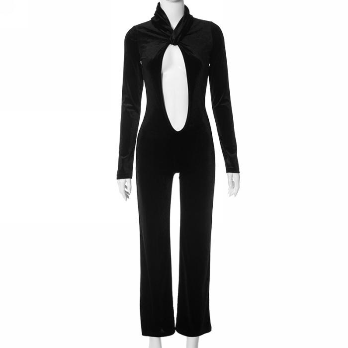 (Real Image)2023 Styles Women Sexy&Fashion Autumn/Winter TikTok&Instagram Styles Black Cut Out Long Sleeve JumpsuitSKU: #CF47838-1