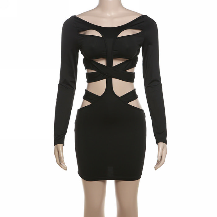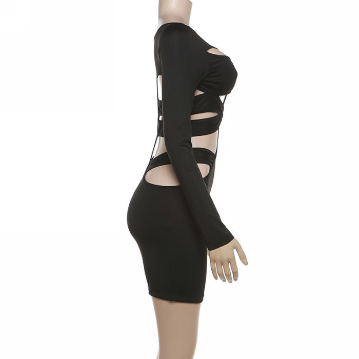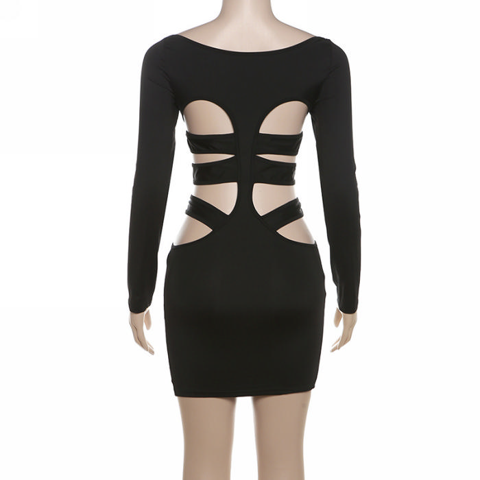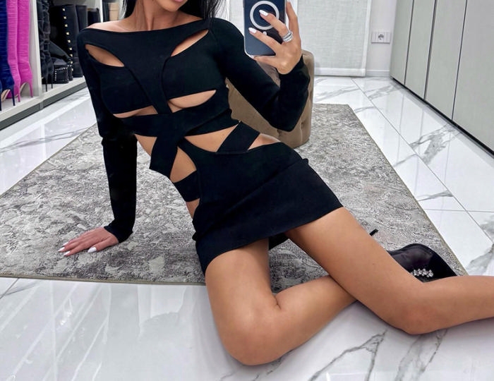 (Real Image)2023 Styles Women Sexy&Fashion Autumn/Winter TikTok&Instagram Styles Black Cut Out Long Sleeve Mini DressSKU: #CF77695-1