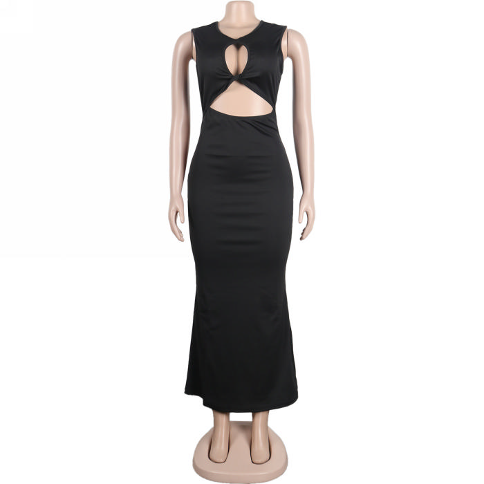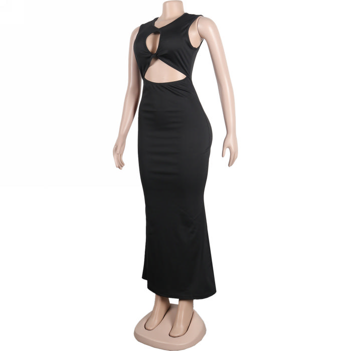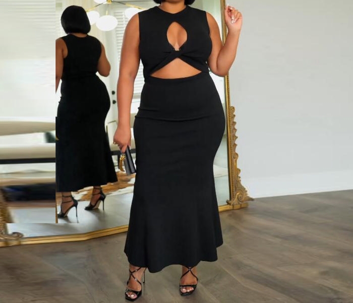 (Real Image)2023 Styles Women Sexy&Fashion Autumn/Winter TikTok&Instagram Styles Black Cut Out Maxi DressSKU: #XF27458-1