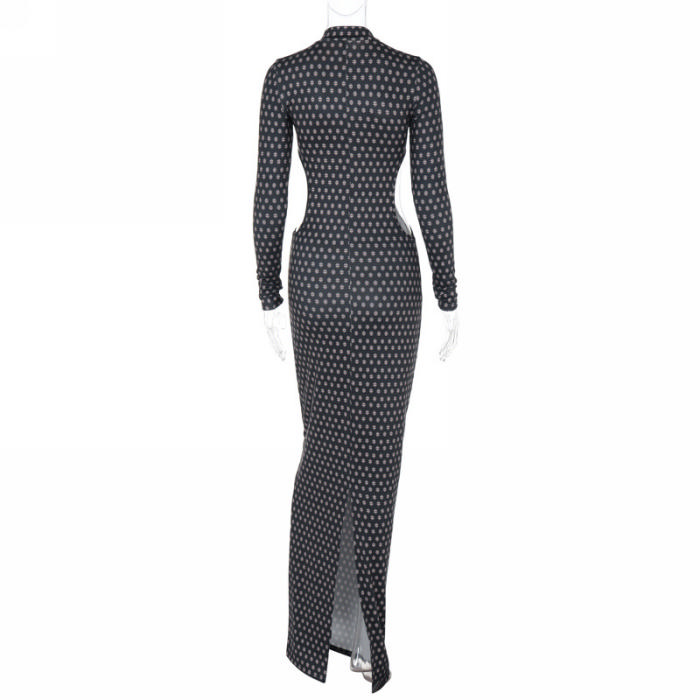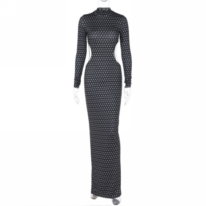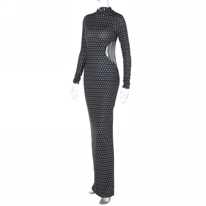 (Real Image)2023 Styles Women Sexy&Fashion Autumn/Winter TikTok&Instagram Styles Black Cut Out Maxi DressSKU: #CF88131-1
