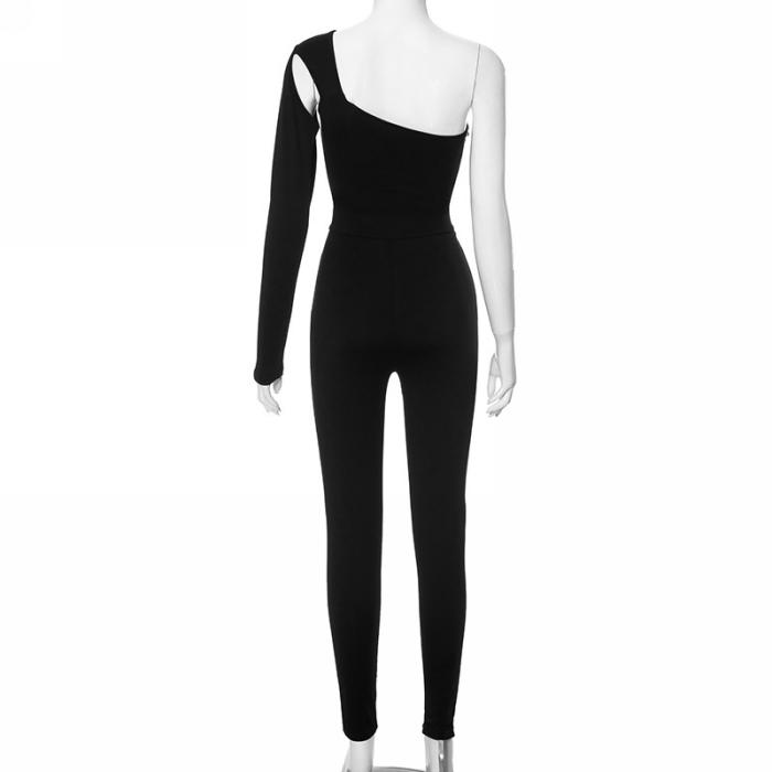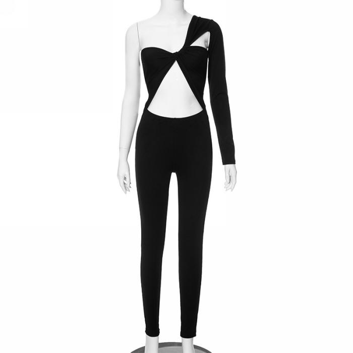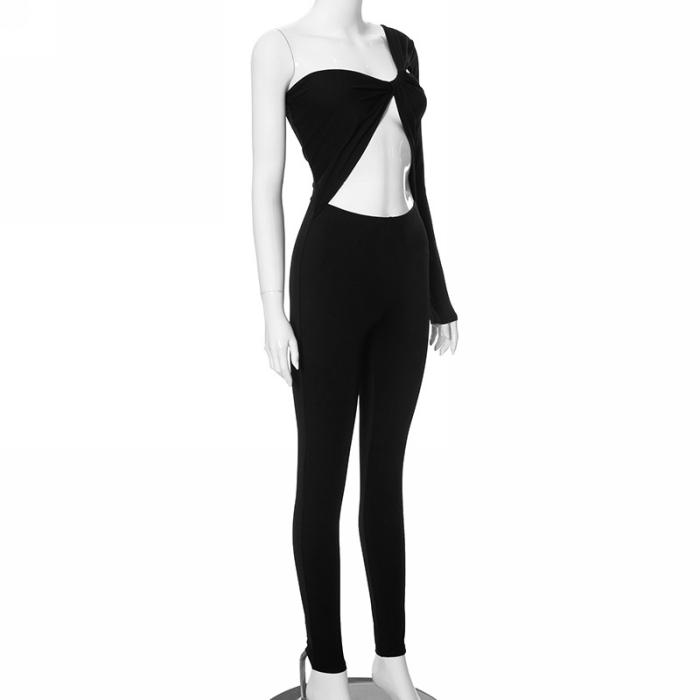 (Real Image)2023 Styles Women Sexy&Fashion Autumn/Winter TikTok&Instagram Styles Black Cut Out Single Long Sleeve JumpsuitSKU: #CF47811-1