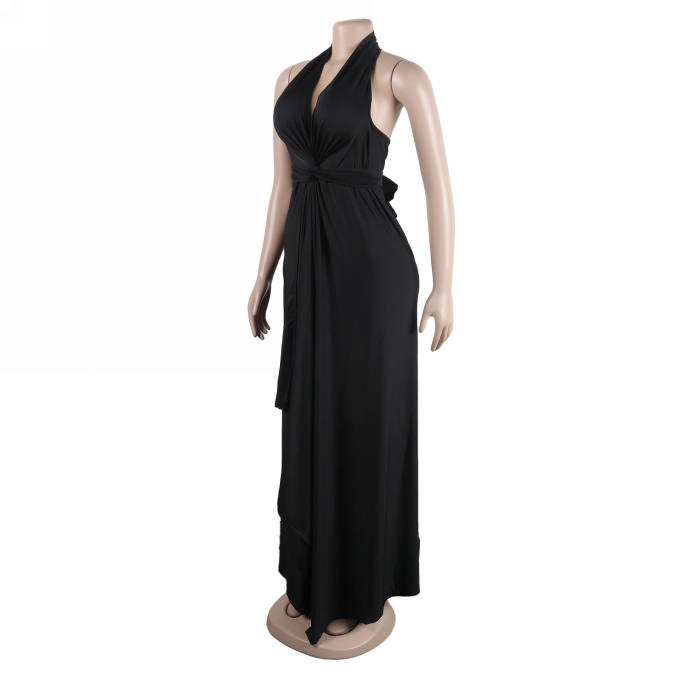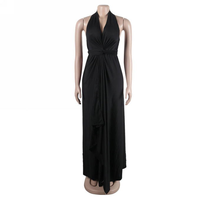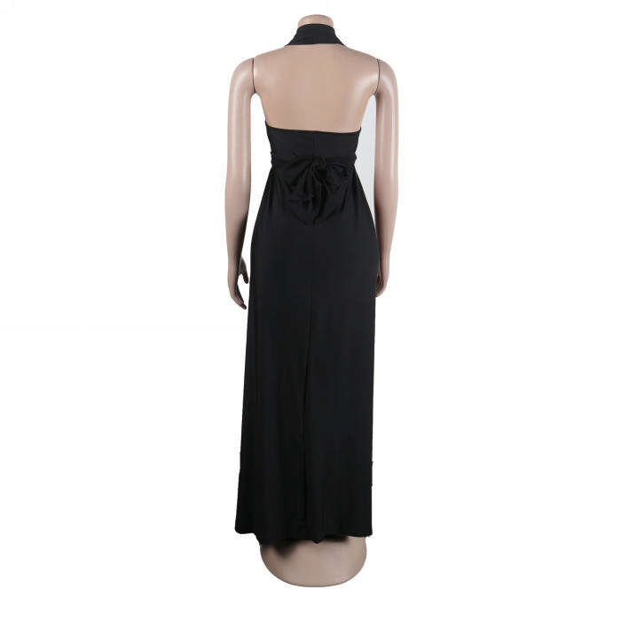 (Real Image)2023 Styles Women Sexy&Fashion Autumn/Winter TikTok&Instagram Styles Black Halter Bandage Maxi DressSKU: #XF27457-1