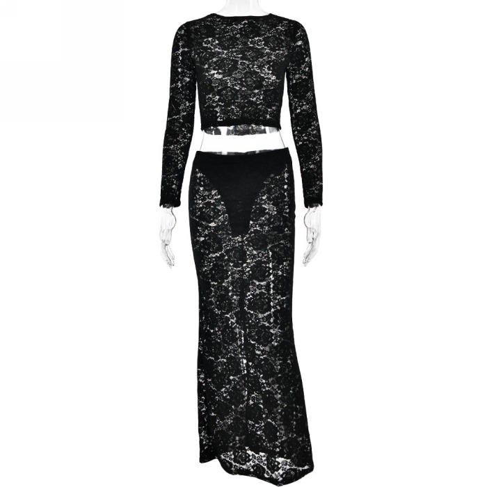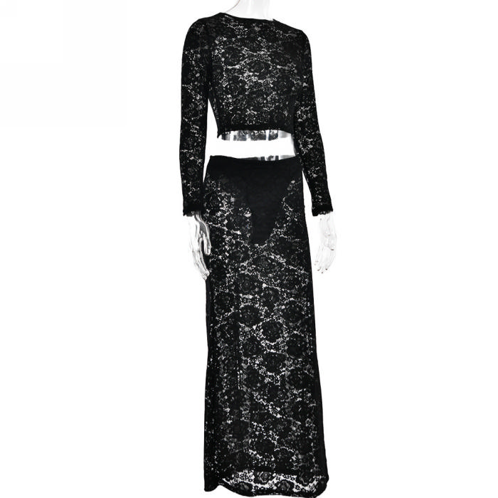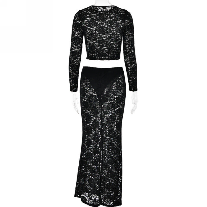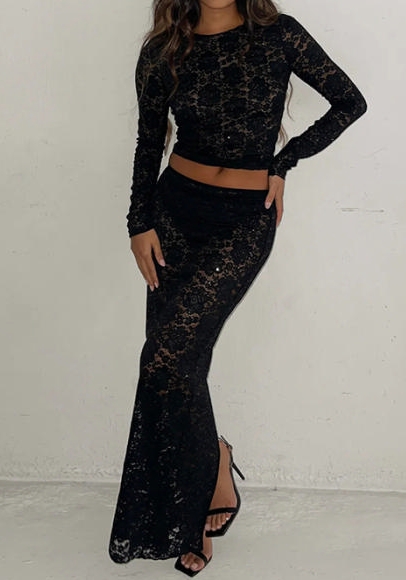 (Real Image)2023 Styles Women Sexy&Fashion Autumn/Winter TikTok&Instagram Styles Black Lace Maxi DressSKU: #XF62648-1