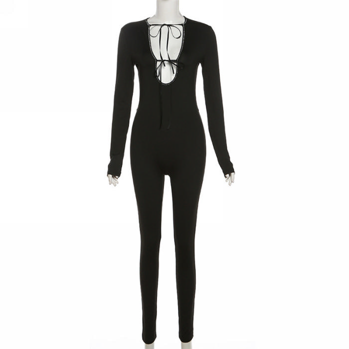 (Real Image)2023 Styles Women Sexy&Fashion Autumn/Winter TikTok&Instagram Styles Black Long Sleeve JumpsuitSKU: #CF77696-1