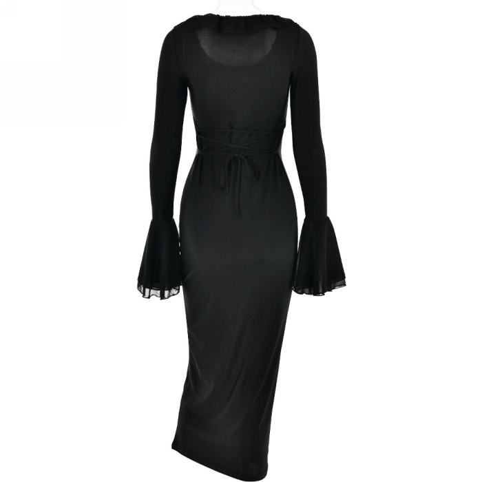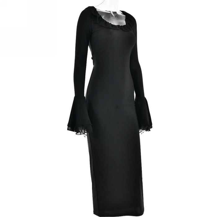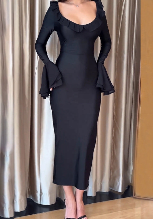 (Real Image)2023 Styles Women Sexy&Fashion Autumn/Winter TikTok&Instagram Styles Black Long Sleeve Maxi DressSKU: #XF62647-1