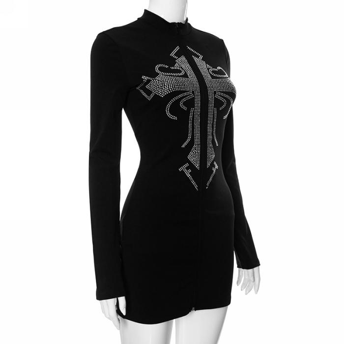 (Real Image)2023 Styles Women Sexy&Fashion Autumn/Winter TikTok&Instagram Styles Black Long Sleeve Mini DressSKU: #CF47813-1