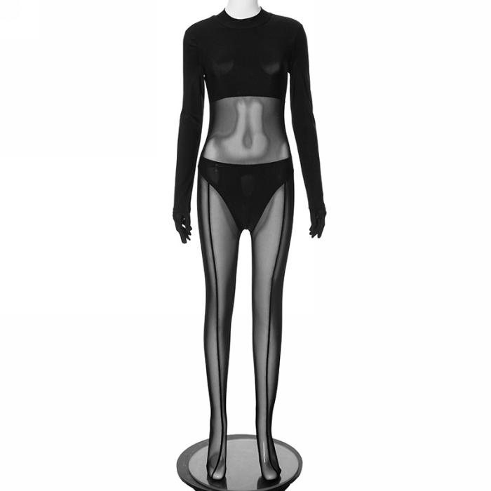 (Real Image)2023 Styles Women Sexy&Fashion Autumn/Winter TikTok&Instagram Styles Black Mesh Long Sleeve JumpsuitSKU: #CF47802-1