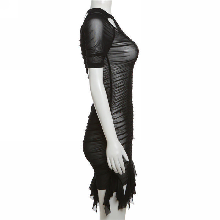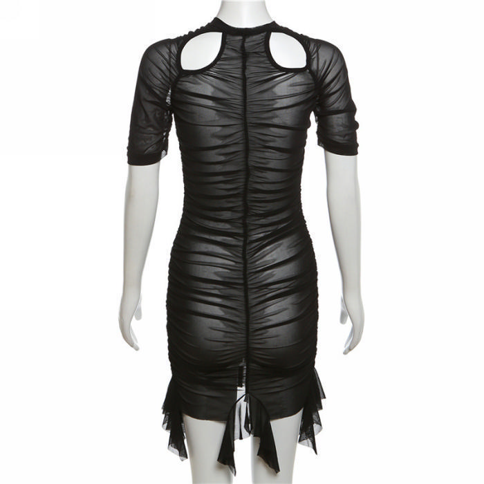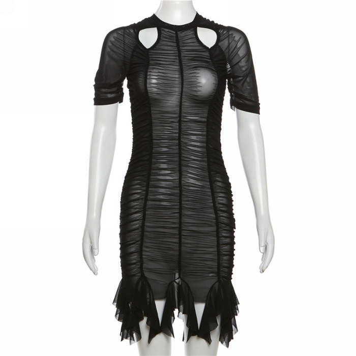 (Real Image)2023 Styles Women Sexy&Fashion Autumn/Winter TikTok&Instagram Styles Black Mesh Ruffle Mini DressSKU: #CF77660-1