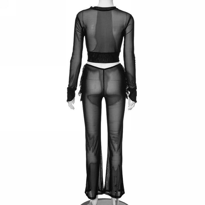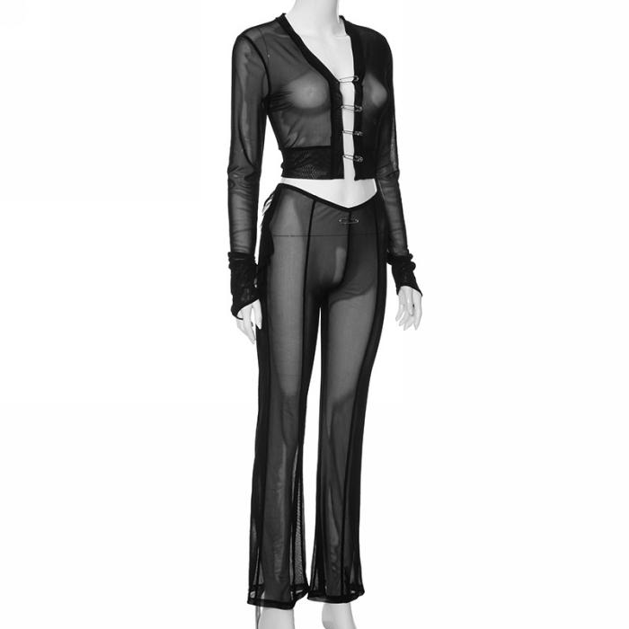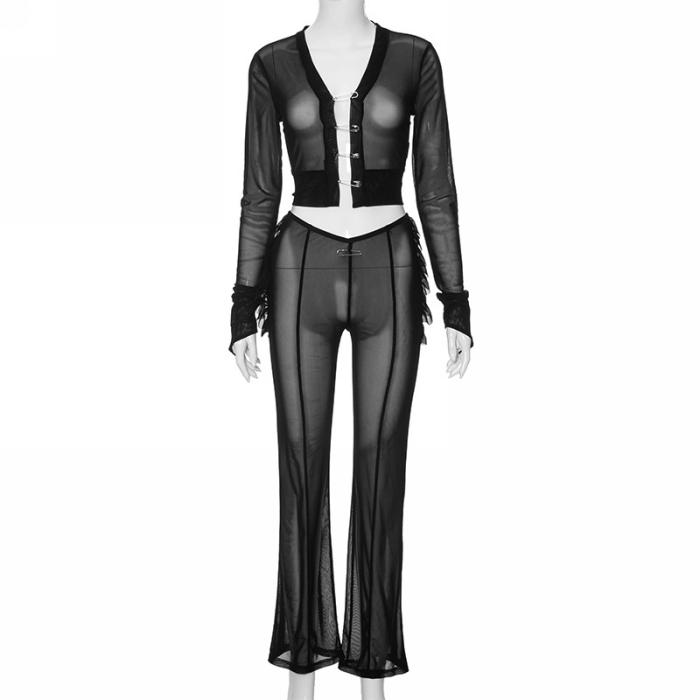(Real Image)2023 Styles Women Sexy&Fashion Autumn/Winter TikTok&Instagram Styles Black Mesh Two Piece SuitSKU: #CF47791-1