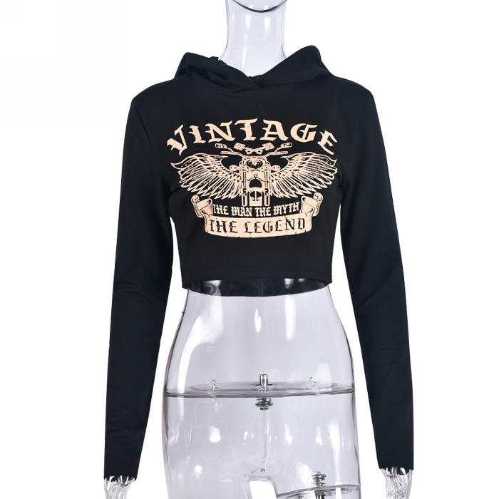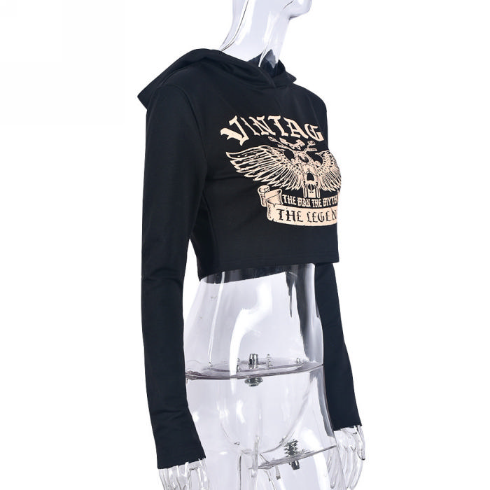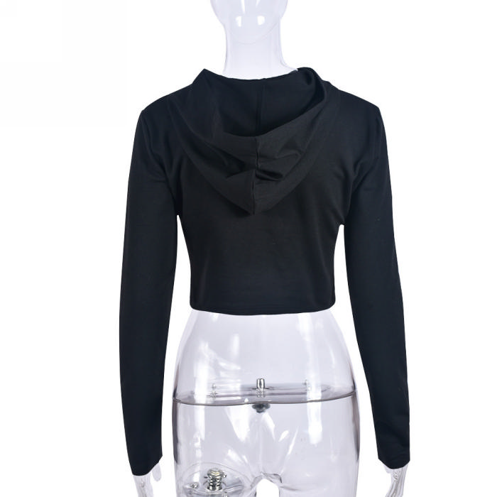 (Real Image)2023 Styles Women Sexy&Fashion Autumn/Winter TikTok&Instagram Styles Black Print Hoodie TopsSKU: #CF59744-1