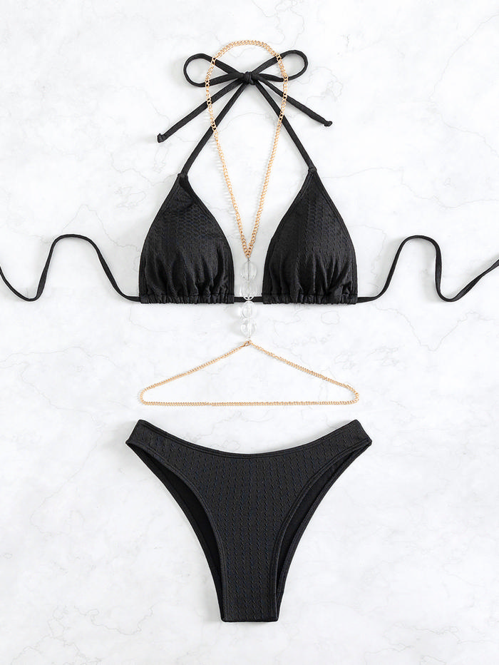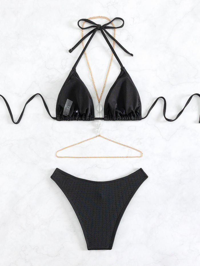 (Real Image)2023 Styles Women Sexy&Fashion Autumn/Winter TikTok&Instagram Styles Black Sequins BikiniSetSKU: #CF61039-1