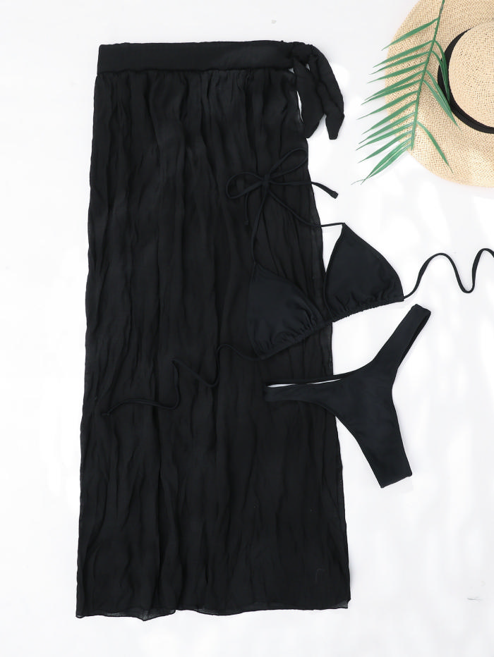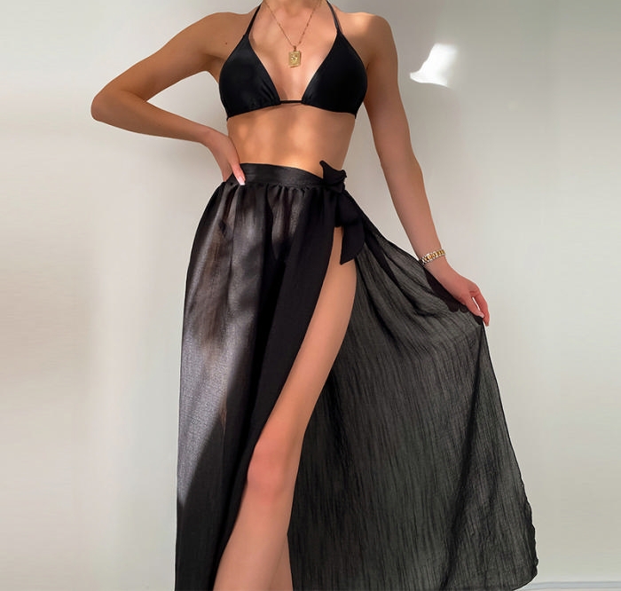 (Real Image)2023 Styles Women Sexy&Fashion Autumn/Winter TikTok&Instagram Styles Black Strap Black 3 Piece SwimsuitSKU: #CF56088-1