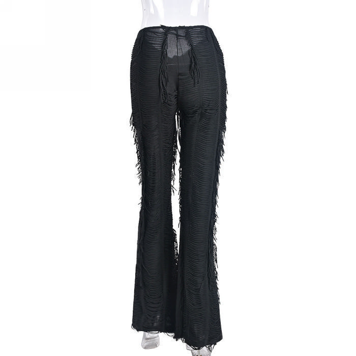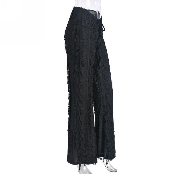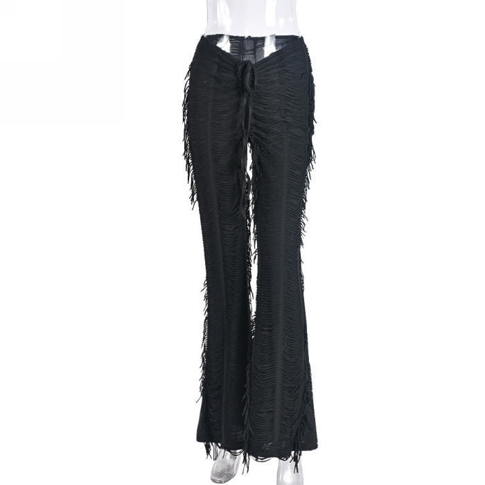 (Real Image)2023 Styles Women Sexy&Fashion Autumn/Winter TikTok&Instagram Styles Black Tassel Long PantsSKU: #CF59772-1