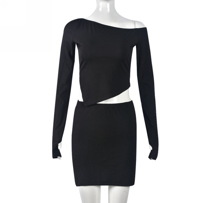 (Real Image)2023 Styles Women Sexy&Fashion Autumn/Winter TikTok&Instagram Styles Black Two Piece DressSKU: #CF59746-1