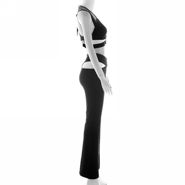 (Real Image)2023 Styles Women Sexy&Fashion Autumn/Winter TikTok&Instagram Styles Black Two Piece SuitSKU: #CF77730-1