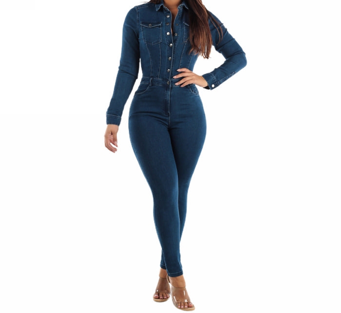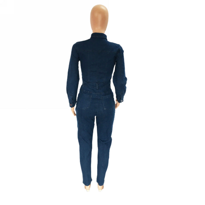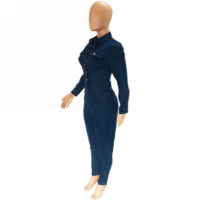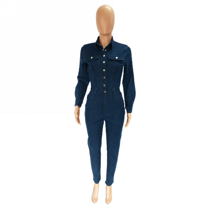 (Real Image)2023 Styles Women Sexy&Fashion Autumn/Winter TikTok&Instagram Styles Blue Front Button Jeans JumpsuitSKU: #XF24010-1