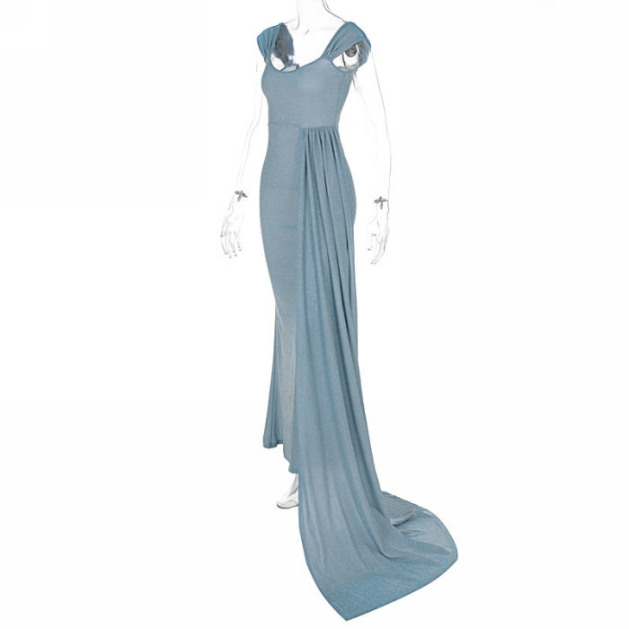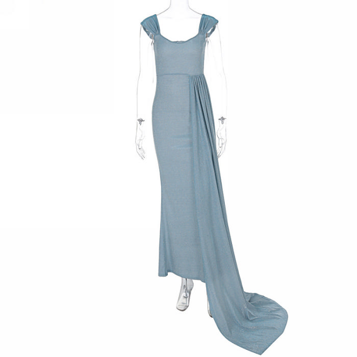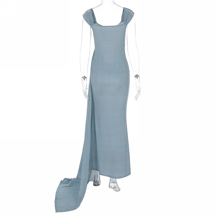 (Real Image)2023 Styles Women Sexy&Fashion Autumn/Winter TikTok&Instagram Styles Blue Irregular Maxi DressSKU: #CF88160-1