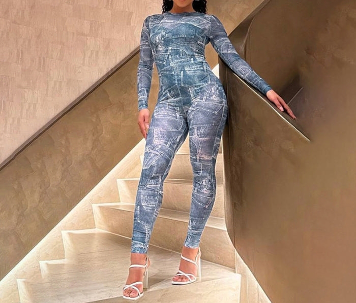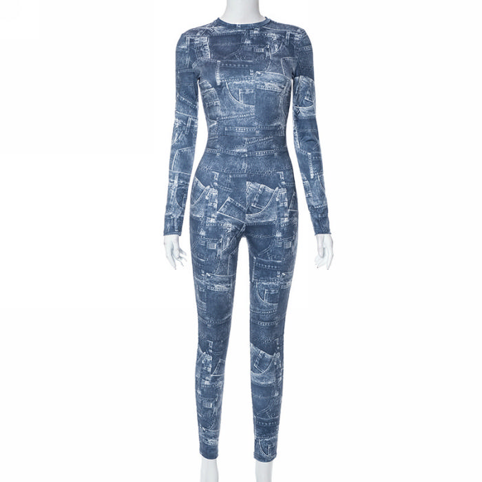 (Real Image)2023 Styles Women Sexy&Fashion Autumn/Winter TikTok&Instagram Styles Blue Long Sleeve JumpsuitSKU: #CF47759-1