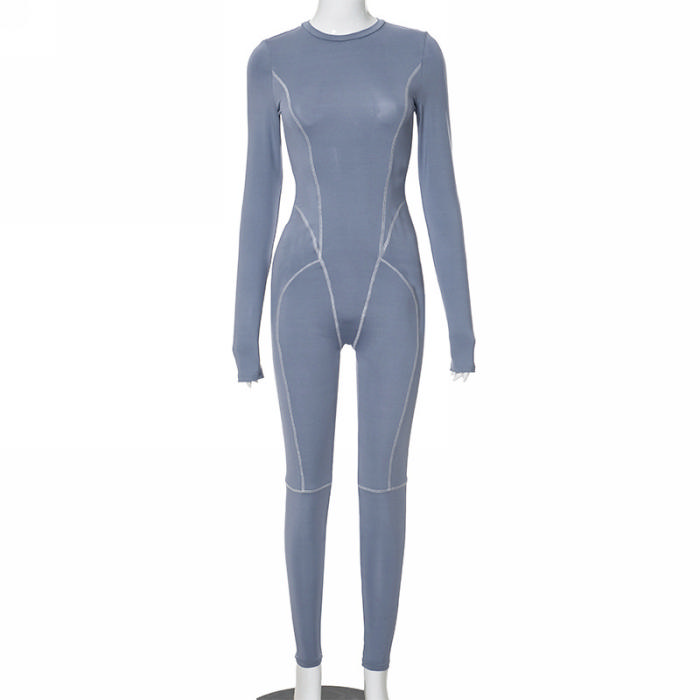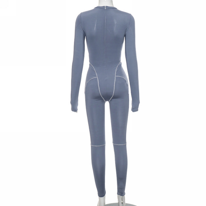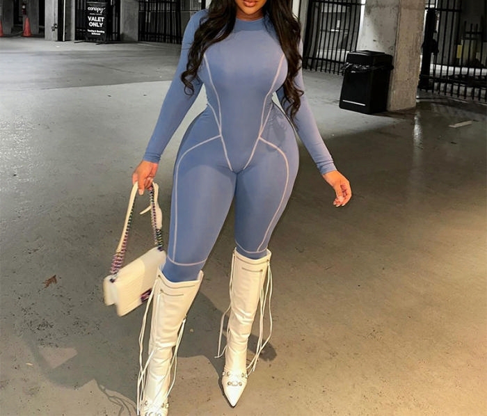 (Real Image)2023 Styles Women Sexy&Fashion Autumn/Winter TikTok&Instagram Styles Blue Long Sleeve JumpsuitSKU: #CF47809-1