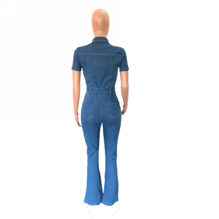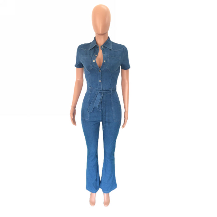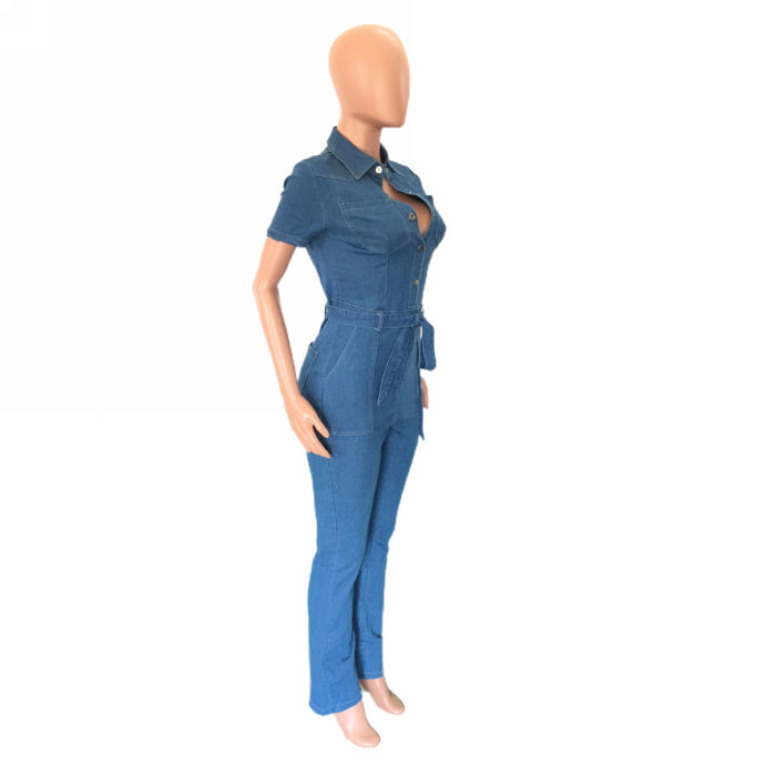 (Real Image)2023 Styles Women Sexy&Fashion Autumn/Winter TikTok&Instagram Styles Blue Loose Jeans Jumpsuit with Waist TieSKU: #XF24002-1