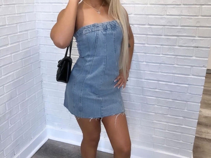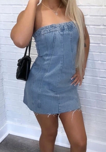 (Real Image)2023 Styles Women Sexy&Fashion Autumn/Winter TikTok&Instagram Styles Blue Tube Jeans Mini DressSKU: #CF59726-1