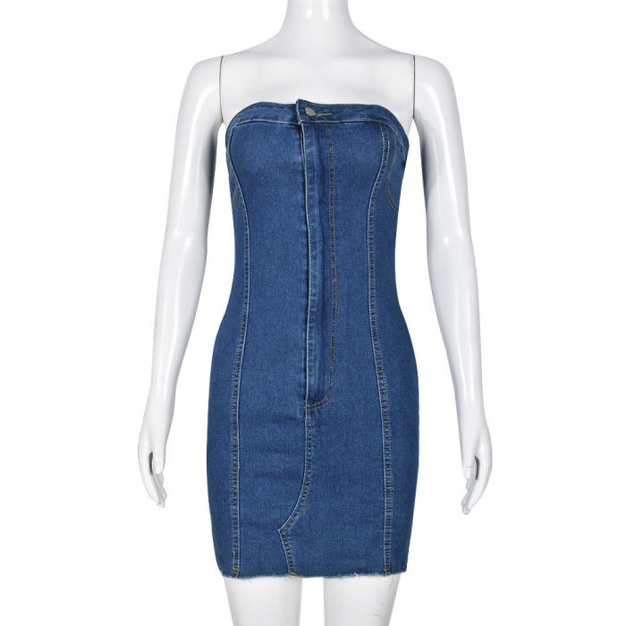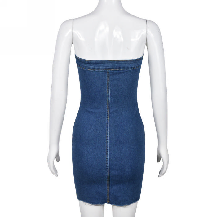 (Real Image)2023 Styles Women Sexy&Fashion Autumn/Winter TikTok&Instagram Styles Blue Tube Jeans Mini DressSKU: #CF59738-1