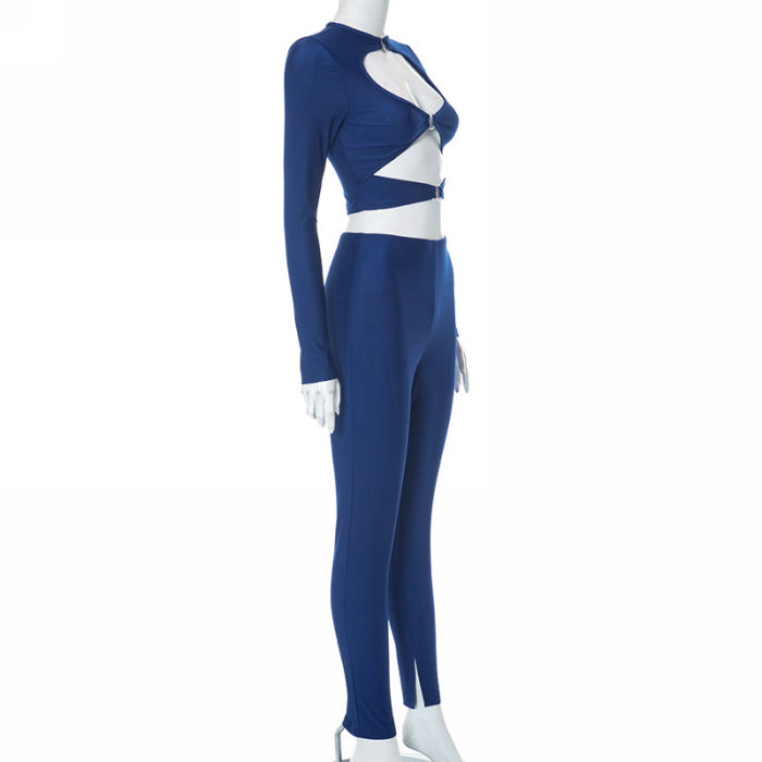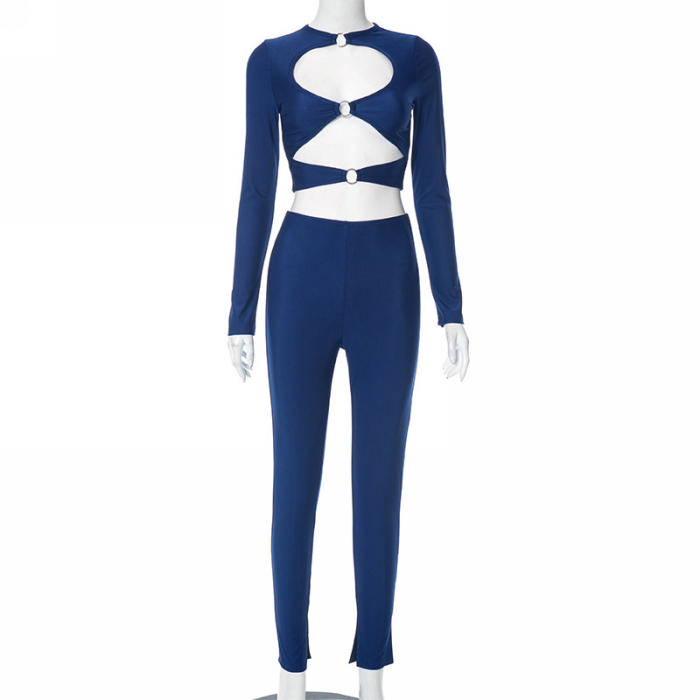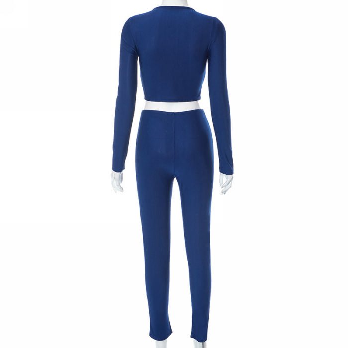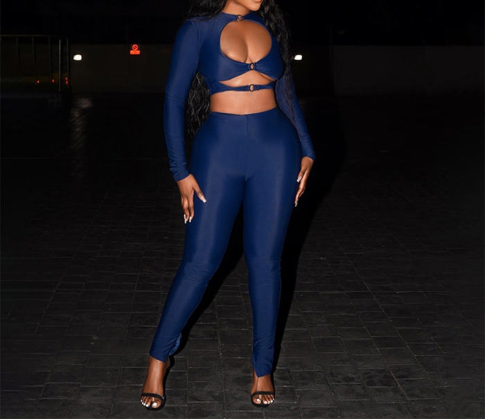 (Real Image)2023 Styles Women Sexy&Fashion Autumn/Winter TikTok&Instagram Styles Blue Two Piece SuitSKU: #CF47721-1