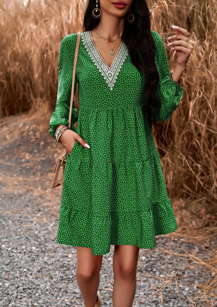 (Real Image)2023 Styles Women Sexy&Fashion Autumn/Winter TikTok&Instagram Styles Bohemian Floral Hem Midi DressSKU: #XF45041-4