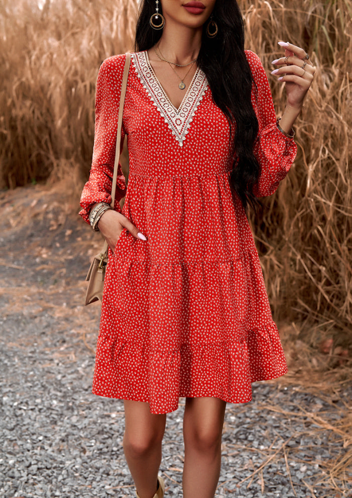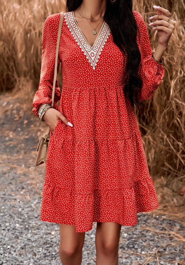(Real Image)2023 Styles Women Sexy&Fashion Autumn/Winter TikTok&Instagram Styles Bohemian Floral Hem Midi DressSKU: #XF45041-3