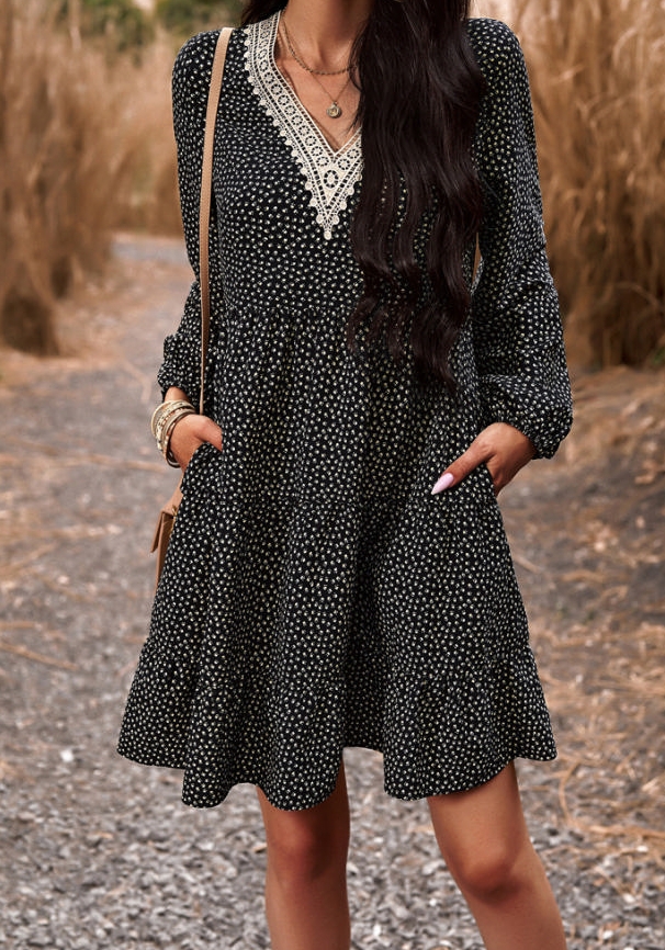 (Real Image)2023 Styles Women Sexy&Fashion Autumn/Winter TikTok&Instagram Styles Bohemian Floral Hem Midi DressSKU: #XF45041-2