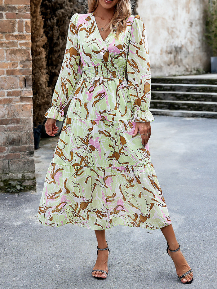 (Real Image)2023 Styles Women Sexy&Fashion Autumn/Winter TikTok&Instagram Styles Bohemian Floral Maxi DressSKU: #XF45048-5