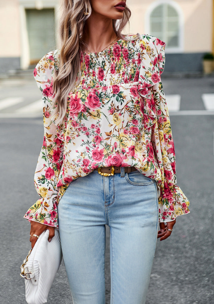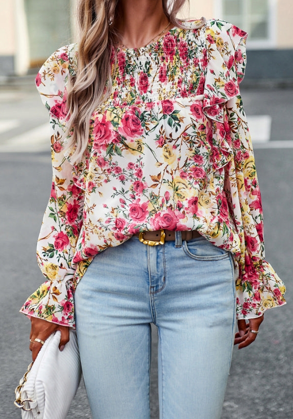 (Real Image)2023 Styles Women Sexy&Fashion Autumn/Winter TikTok&Instagram Styles Bohemian Floral ShirtsSKU: #XF45008-1