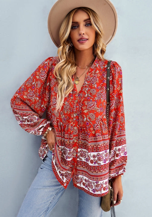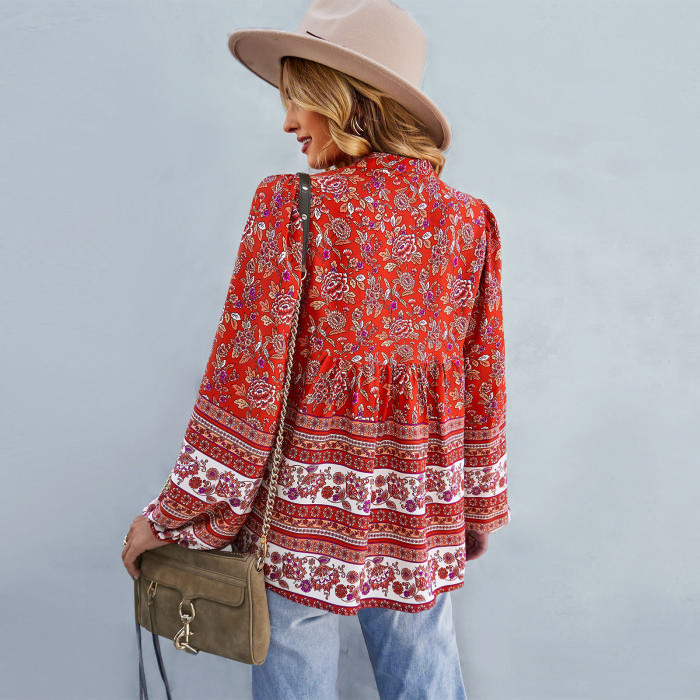 (Real Image)2023 Styles Women Sexy&Fashion Autumn/Winter TikTok&Instagram Styles Bohemian Floral ShirtsSKU: #XF45015-1