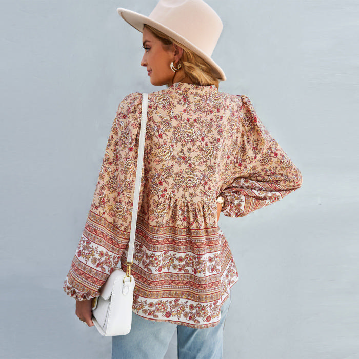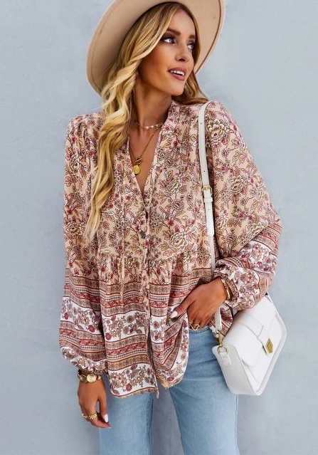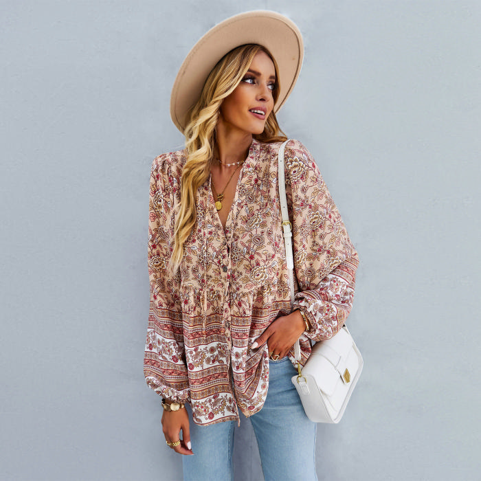 (Real Image)2023 Styles Women Sexy&Fashion Autumn/Winter TikTok&Instagram Styles Bohemian Floral ShirtsSKU: #XF45015-2