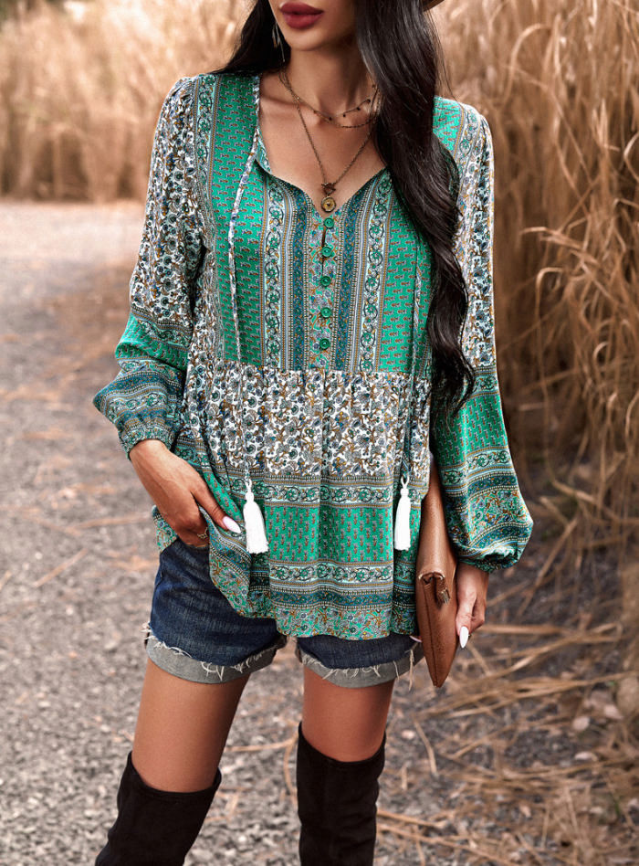 (Real Image)2023 Styles Women Sexy&Fashion Autumn/Winter TikTok&Instagram Styles Bohemian Floral ShirtsSKU: #XF45023-3