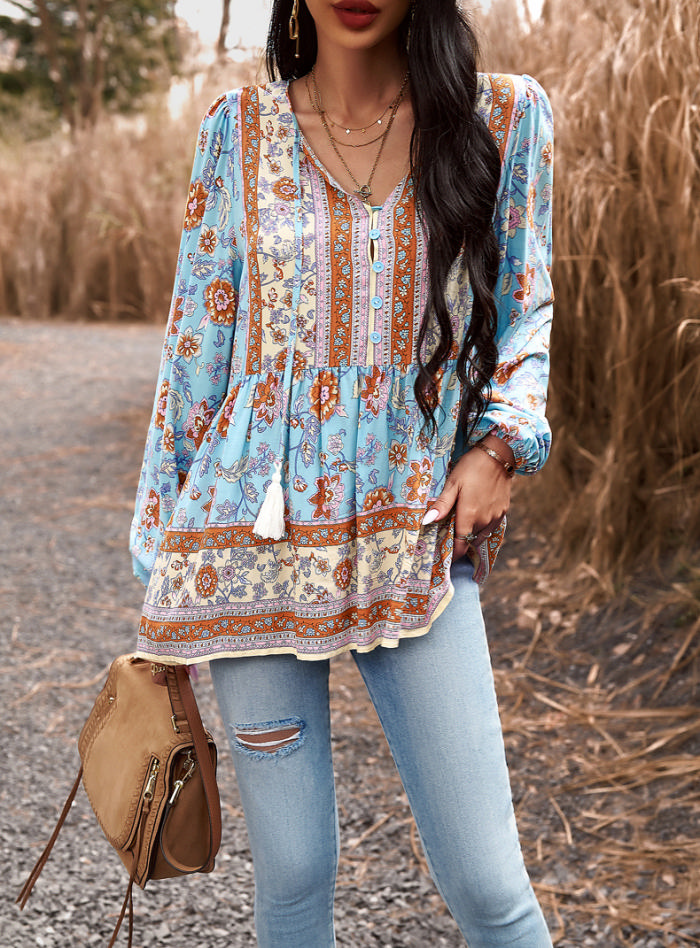 (Real Image)2023 Styles Women Sexy&Fashion Autumn/Winter TikTok&Instagram Styles Bohemian Floral ShirtsSKU: #XF45024-3
